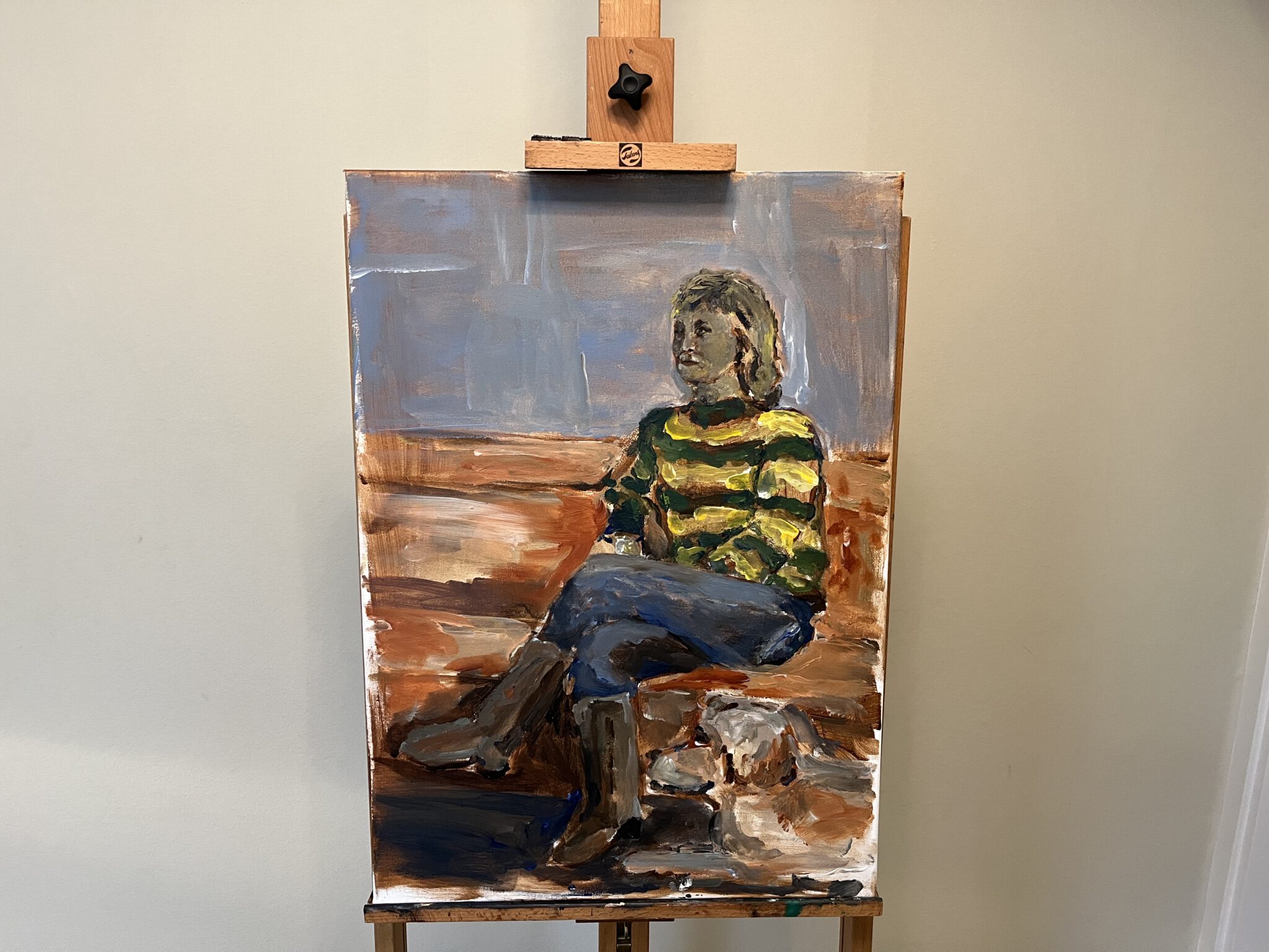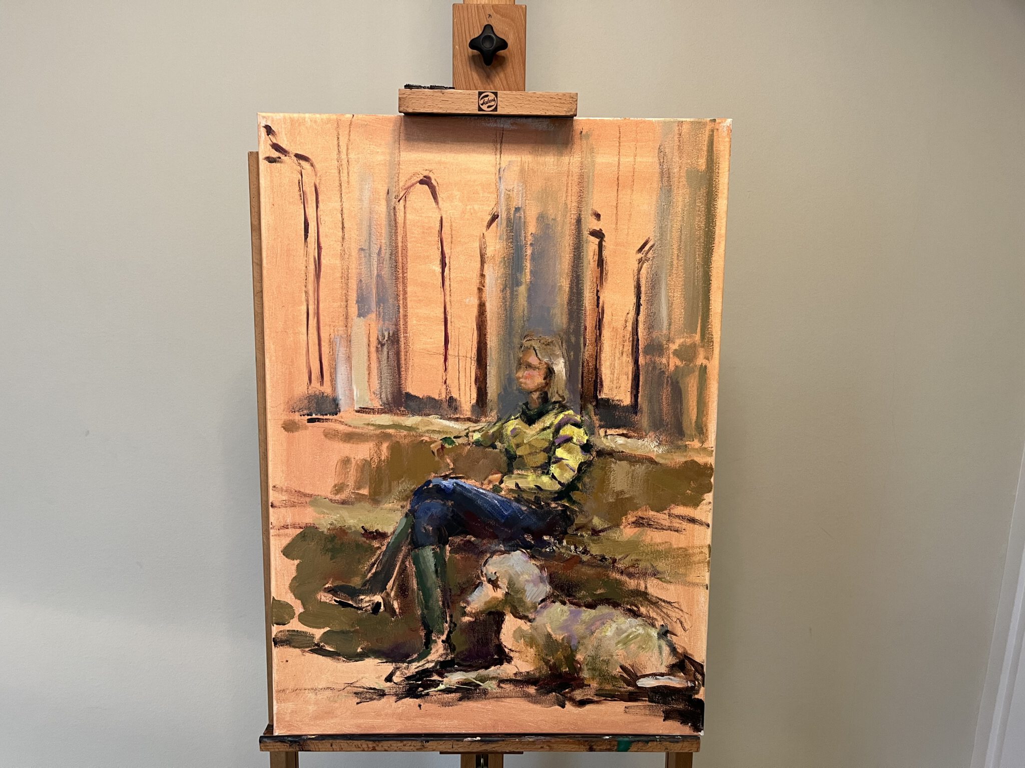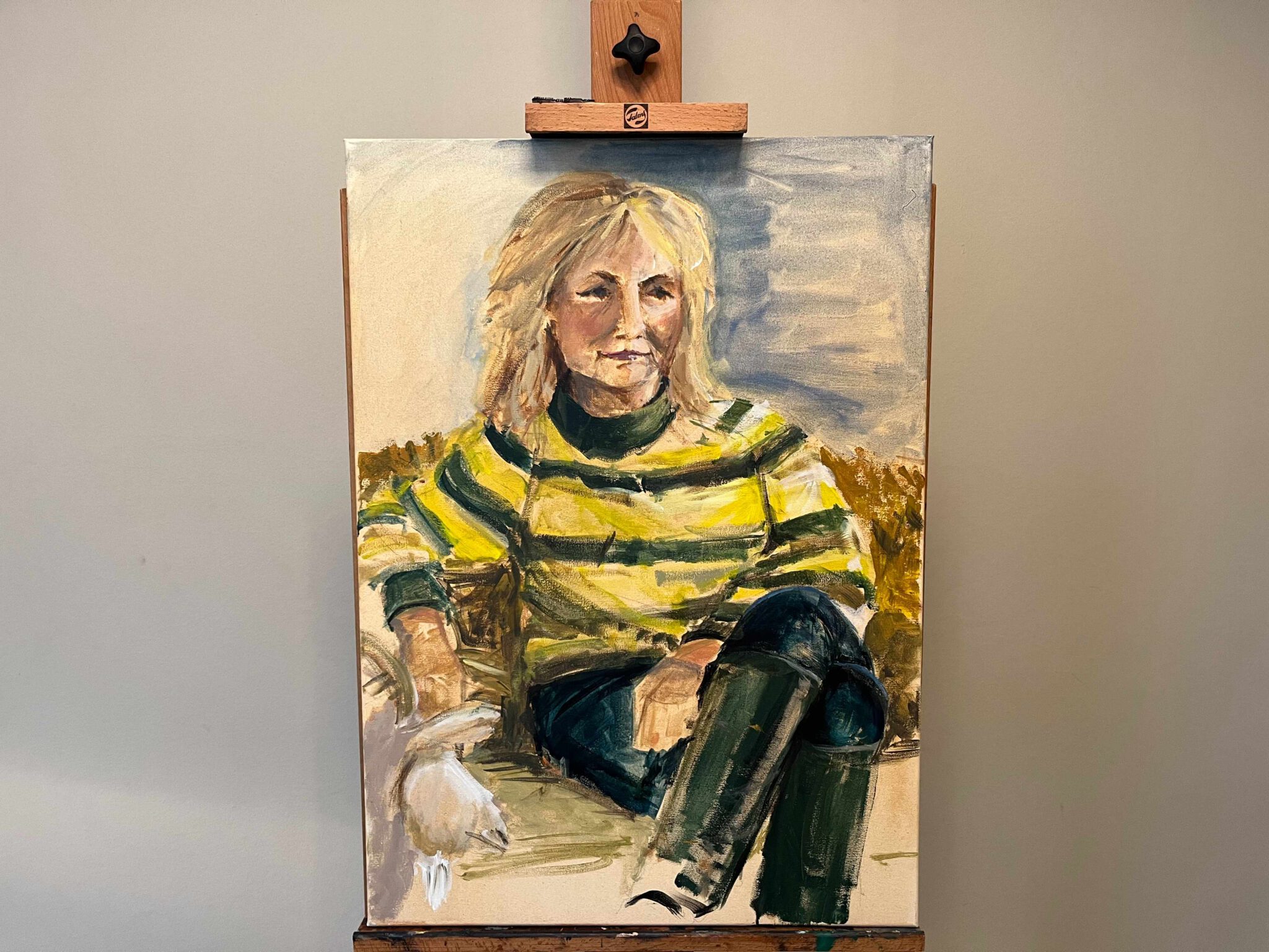 De leerlingen maken een portret van Yvon Jaspers met haar hond en geiten. Het is niet verplicht voor de leerlingen om heel de beestenboel mee te portretteren...maar het mag wel.