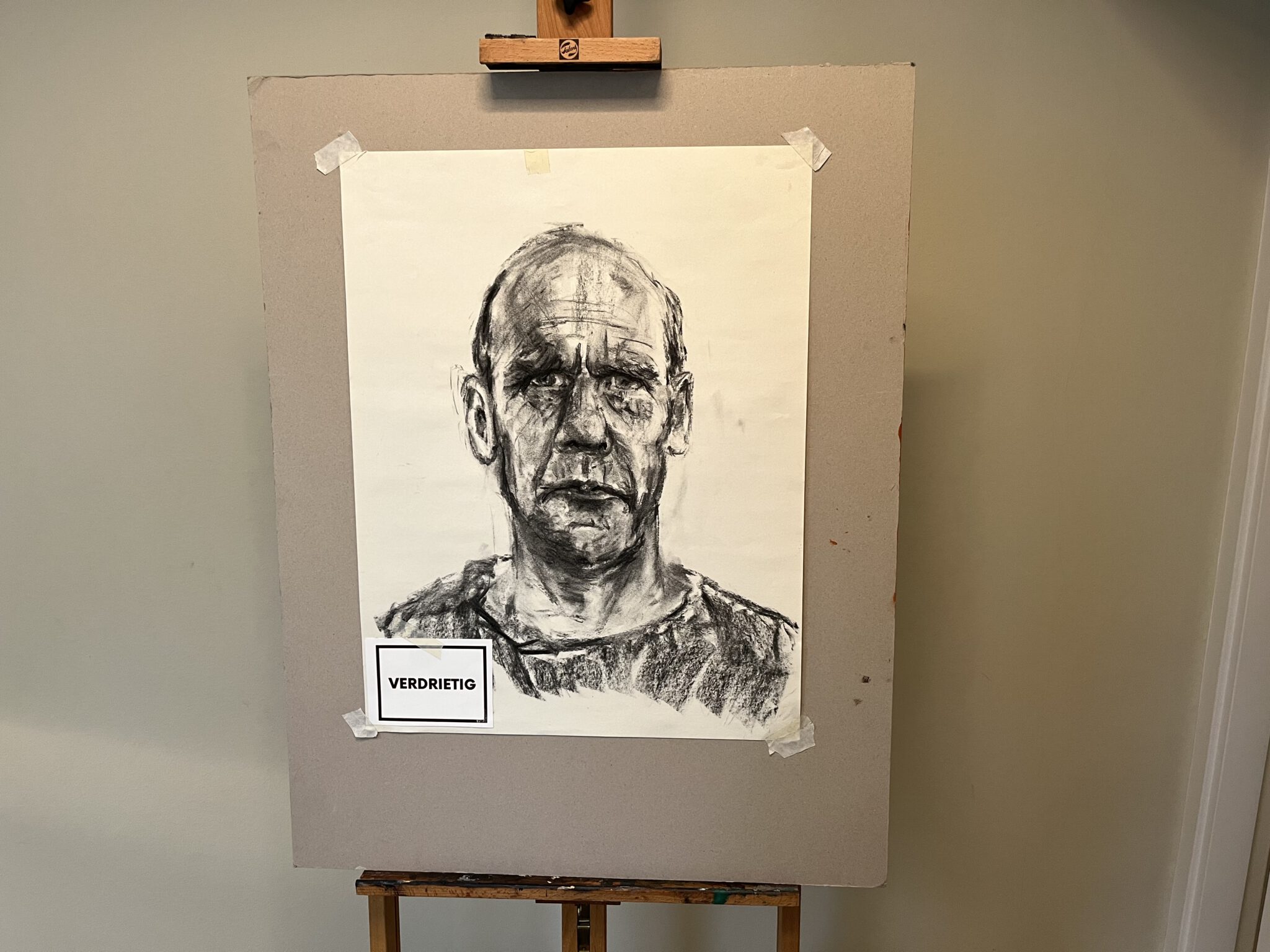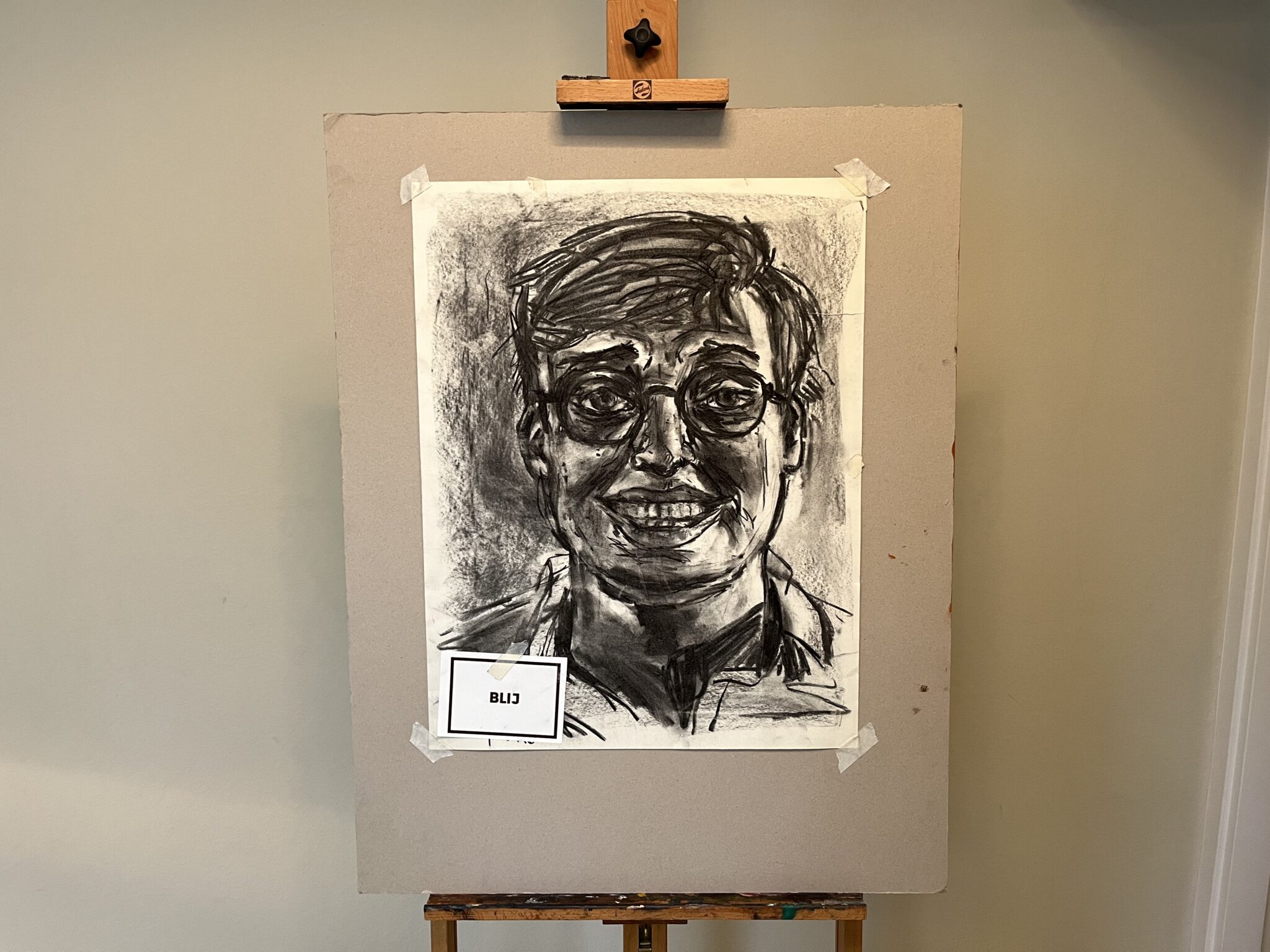 Als openingsopdracht maken alle leerlingen een zelfportret. Elke kandidaat-leerling heeft een envelop gekregen met een gezichtsuitdrukking. Aan de leerlingen de taak om zichzelf met deze uitdrukking te portretteren. Ze werken met houtskool.