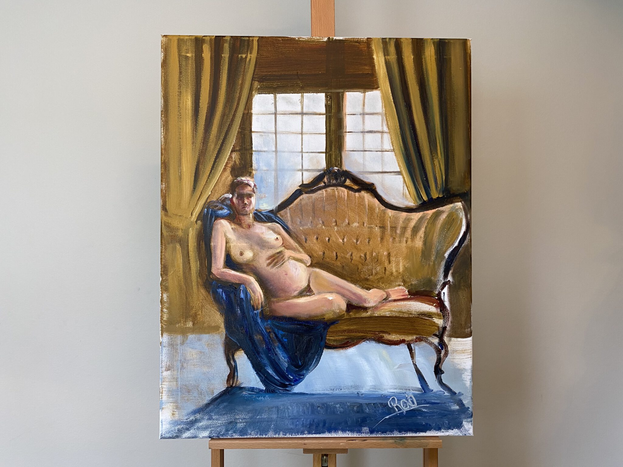 In de vrije opdracht schilderen de leerlingen deze week een naaktmodel. Ze mogen hun creativiteit de vrije loop laten, ze bepalen zelf of ze het model ten voeten uit schilderen of niet. De leerlingen hebben 3 uur de tijd.