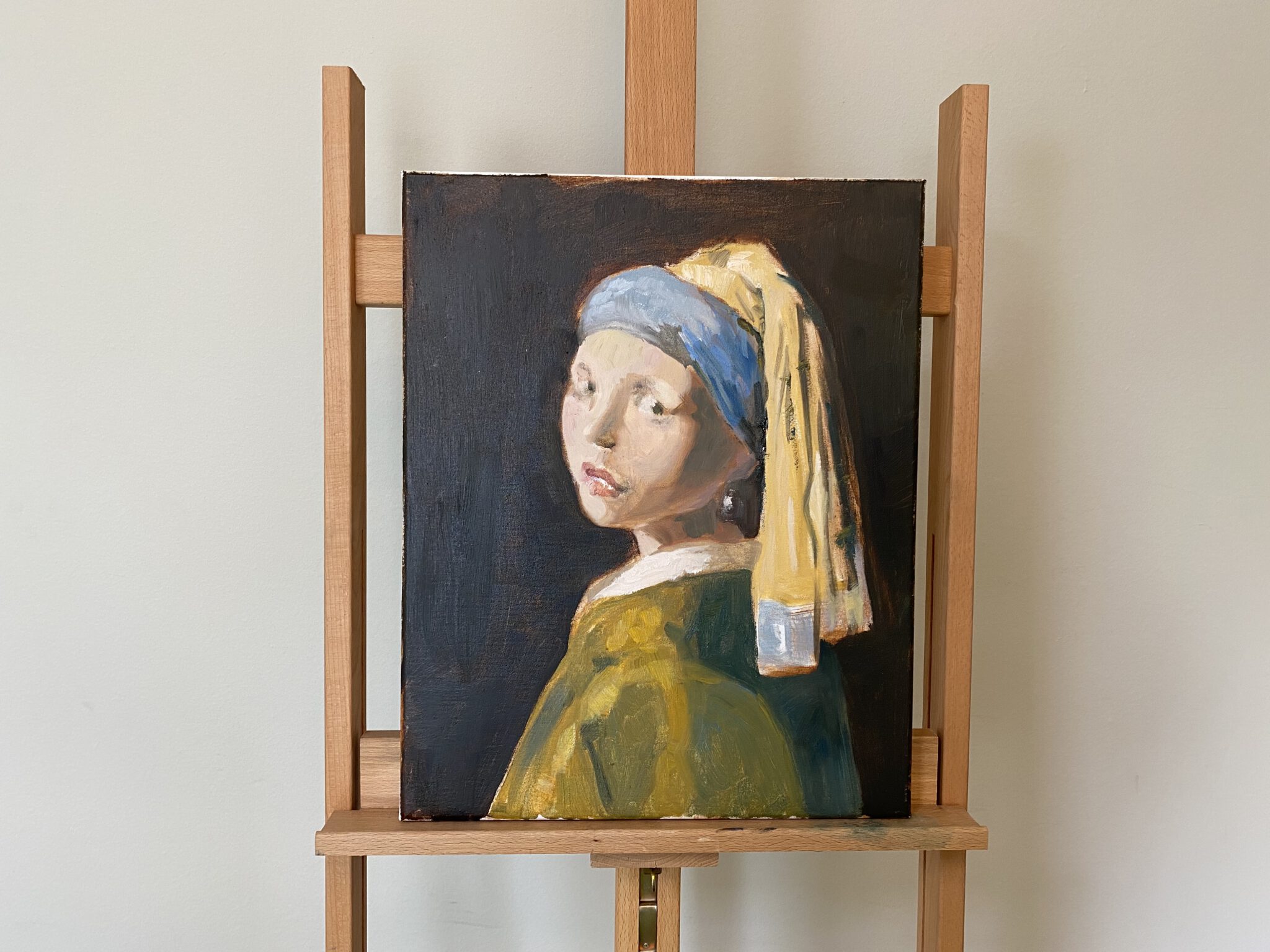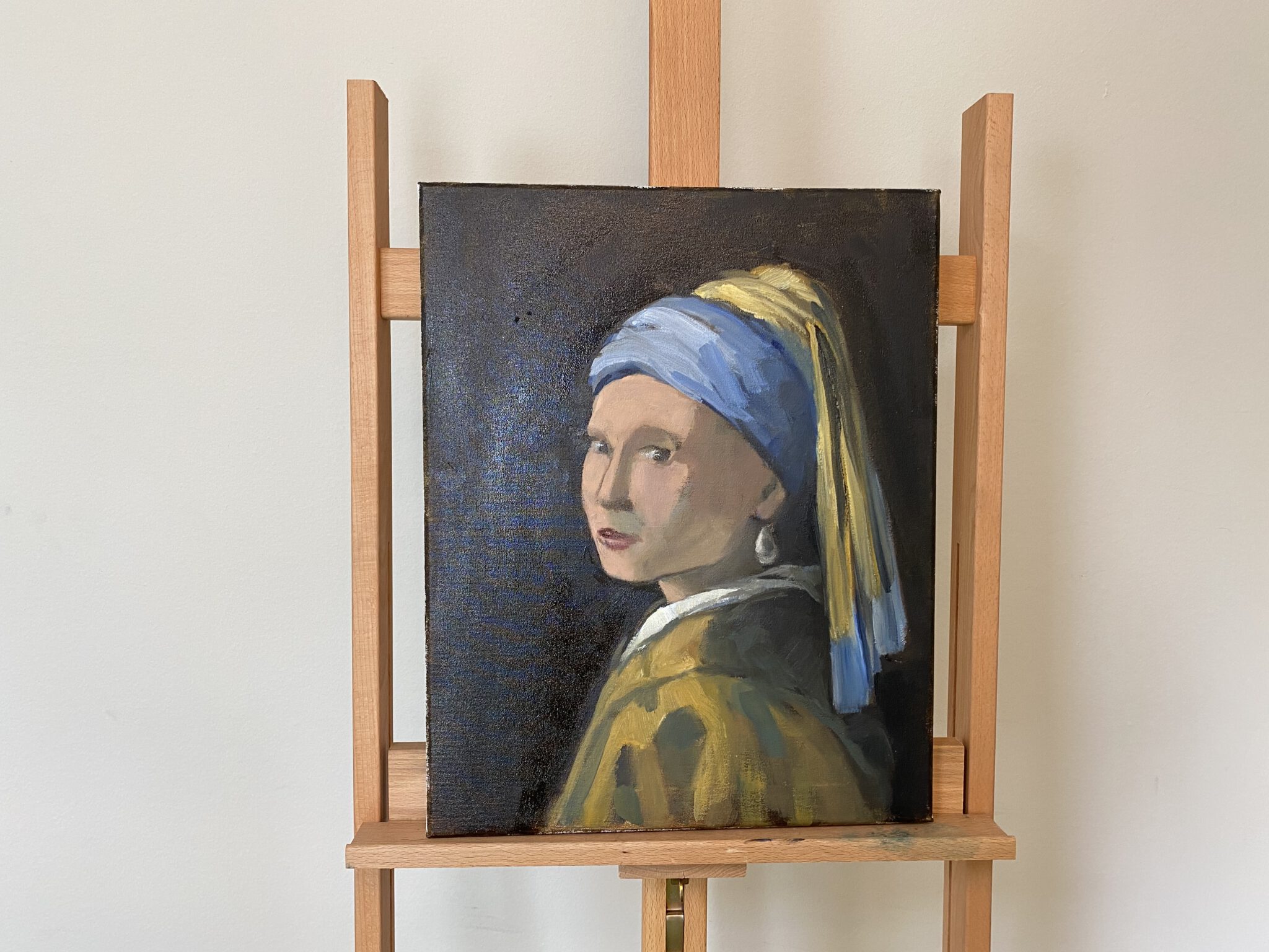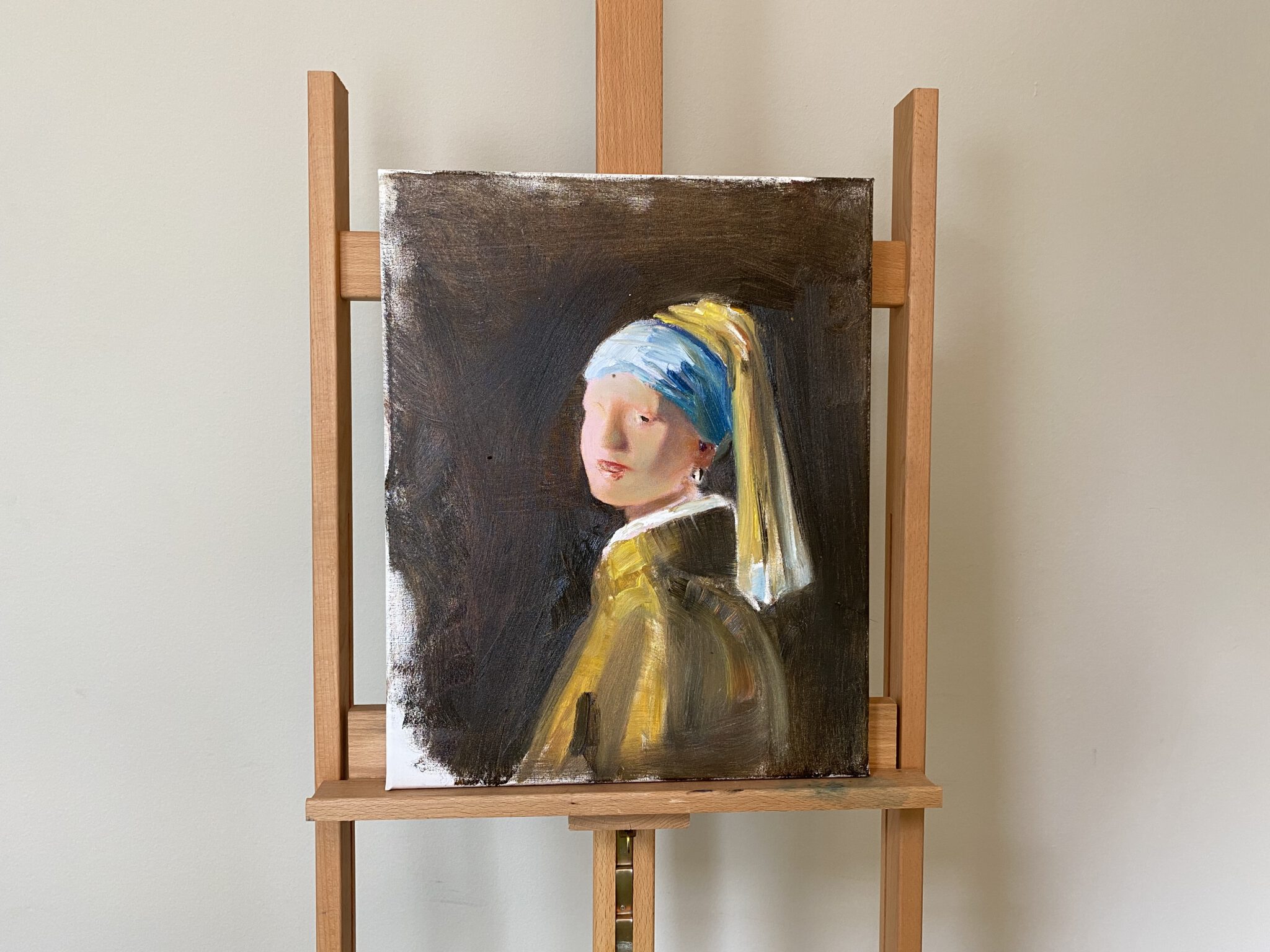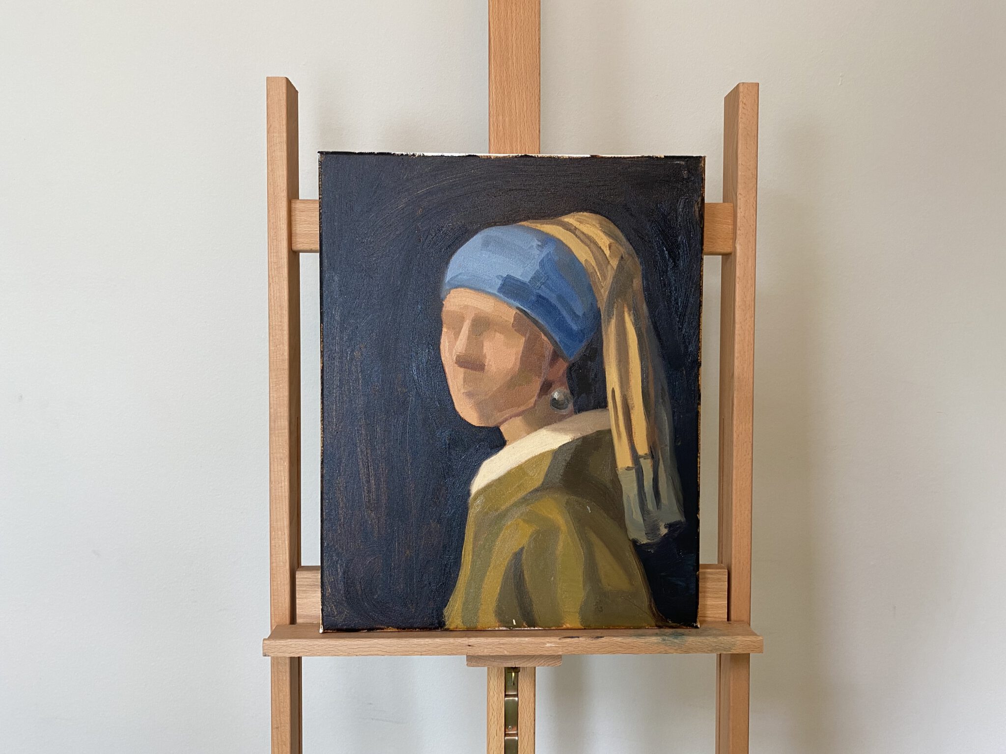 Een kleurenstudie maken van het ‘Meisje met de parel’ van Johannes Vermeer. Het gaat erom wie de opbouw van de kleurvlakken in het schilderij het dichtst benadert. Voor deze opdracht werken de leerlingen allemaal met een vaste set penselen en ze hebben 1,5 uur de tijd.