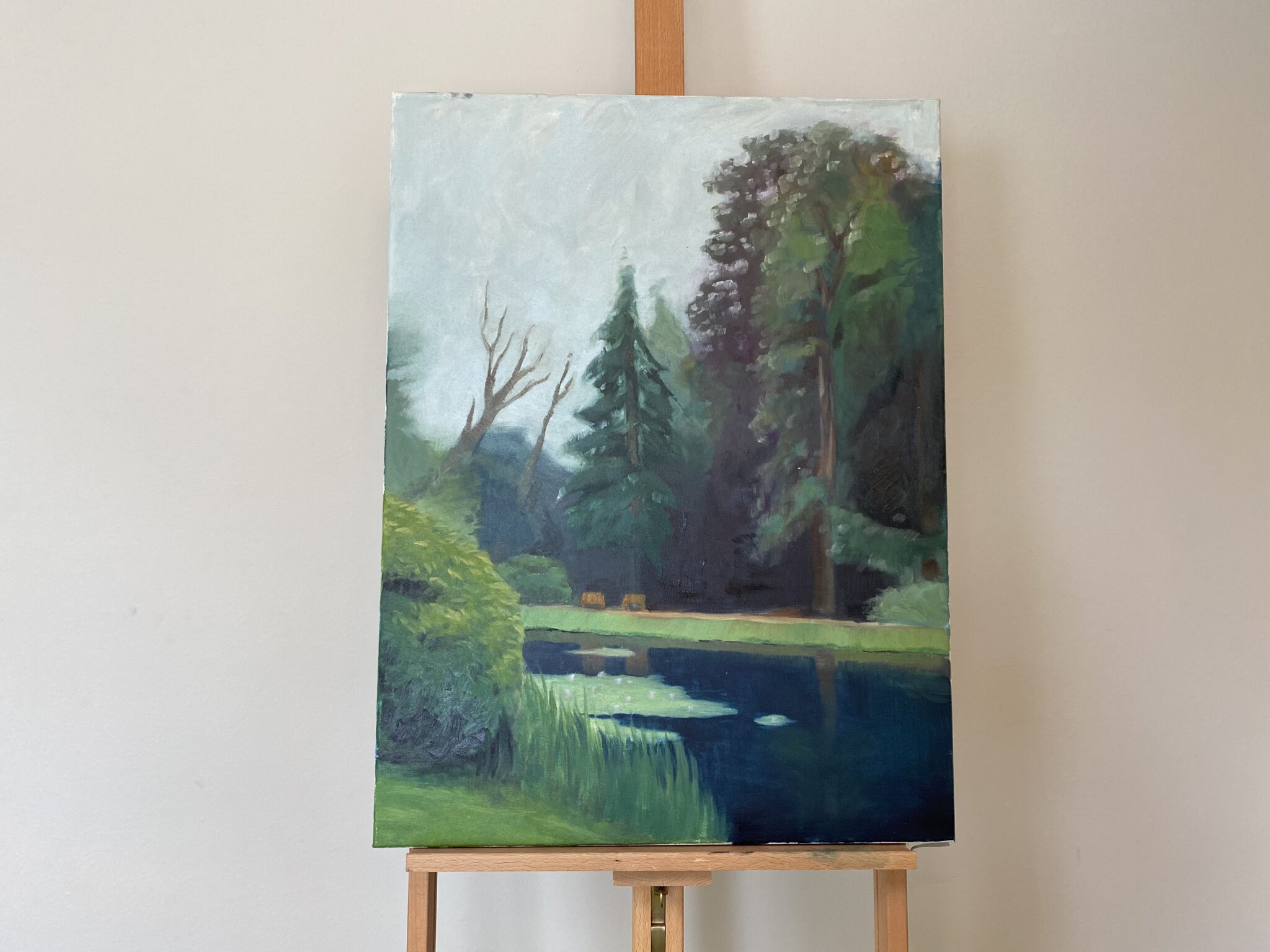 De leerlingen staan aan de oever van de vijver op Paleis Soestdijk. De opdracht luidt: het maken van een landschapsschilderij. Wat wordt hun compositie, welke kleuren gaan ze inzetten om de sfeer die ze willen neerzetten vast te leggen en wat nemen ze mee van wat ze bij de technische opdracht geleerd hebben? De leerlingen hebben 3,5 uur de tijd.