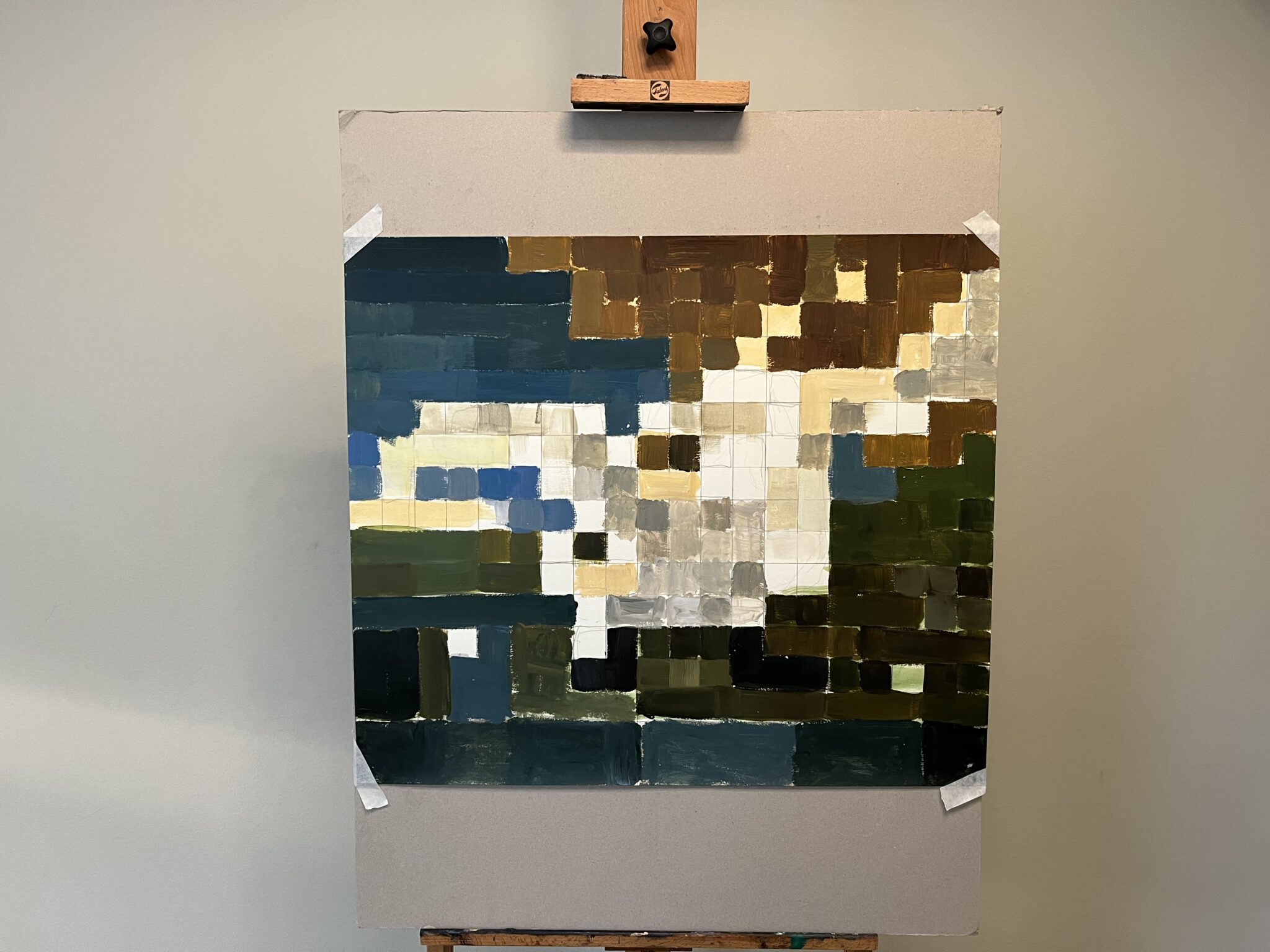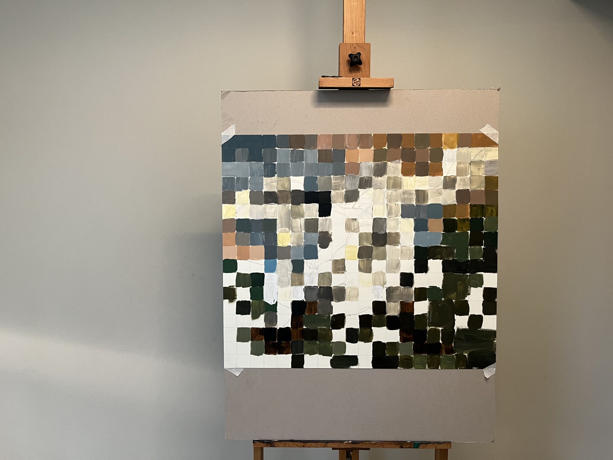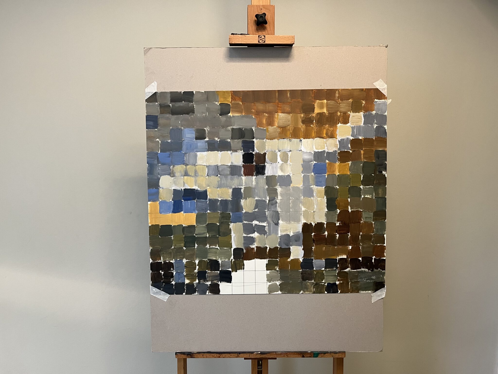 De leerlingen maken een kleurstudie van De Bedreigde Zwaan op de Eregalerij van het Rijksmuseum. Ze krijgen een vel met veel hokjes. Deze hokjes moeten ze als een soort pixels zien waarin ze op zoek gaan naar de juiste kleuren die hierin zijn verwerkt. Het wordt lastig voor hen omdat de zwaan op het oog uit alleen maar uit één wit vlak bestaat, maar daar zitten heel veel verschillende nuances in.