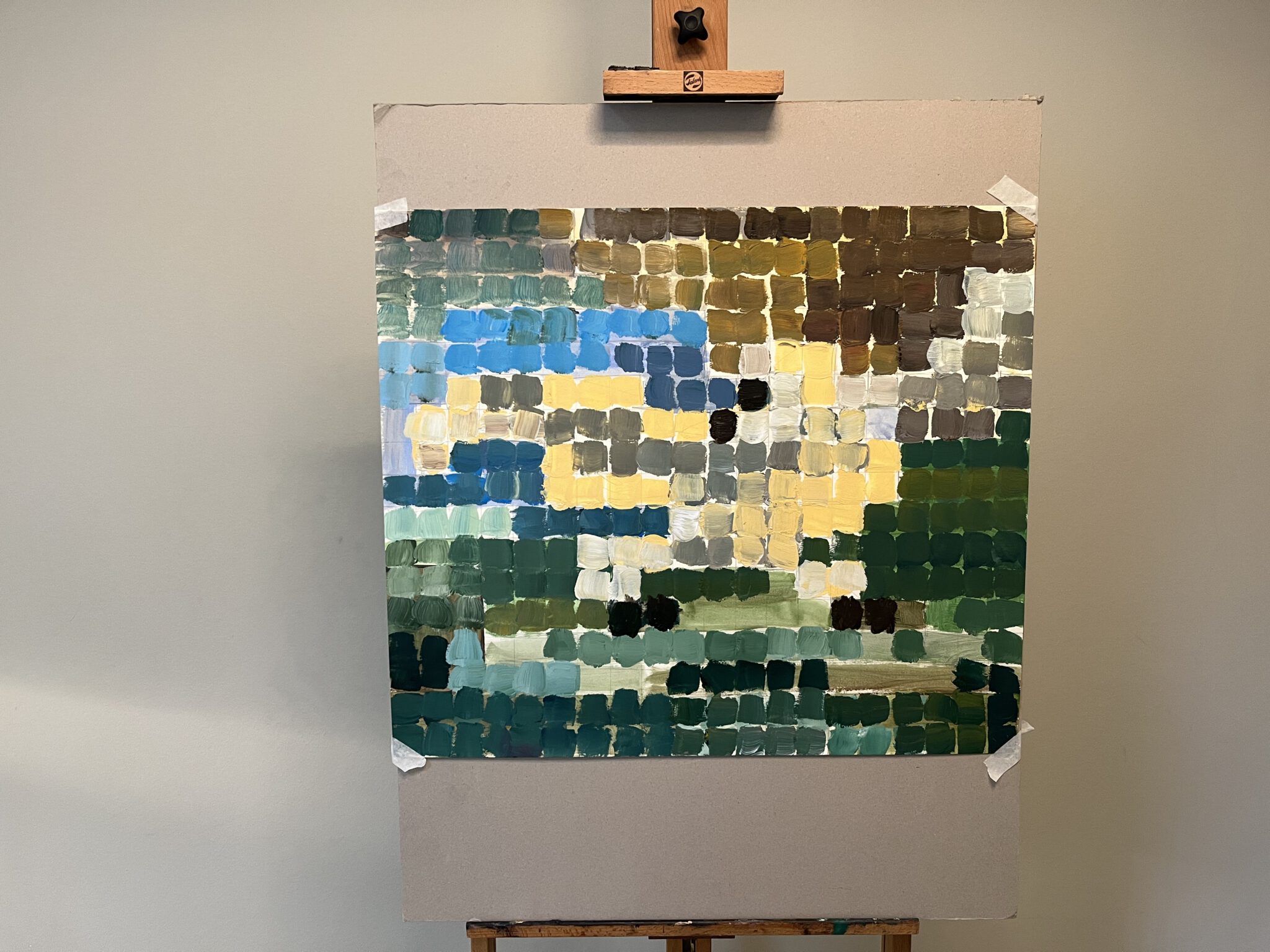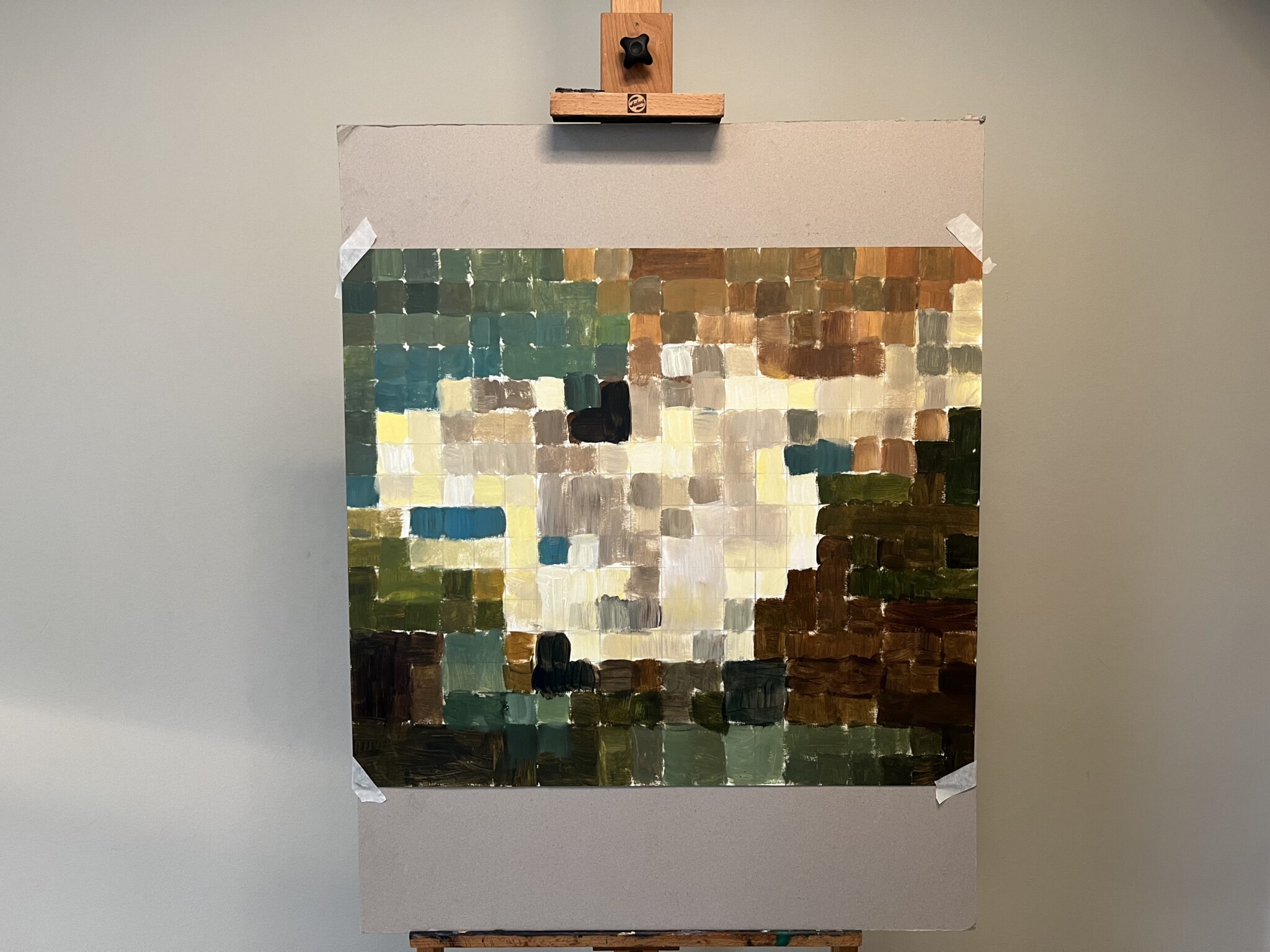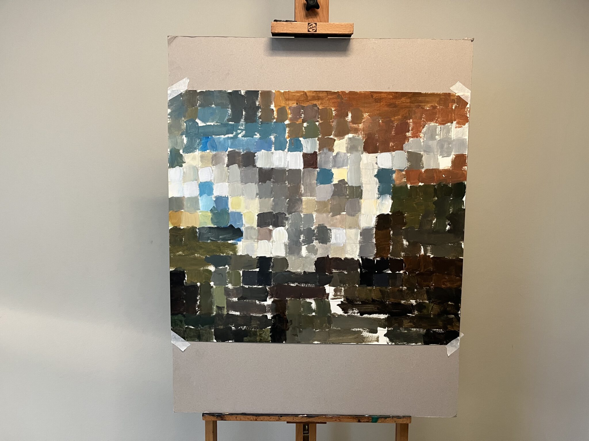 De leerlingen maken een kleurstudie van De Bedreigde Zwaan op de Eregalerij van het Rijksmuseum. Ze krijgen een vel met veel hokjes. Deze hokjes moeten ze als een soort pixels zien waarin ze op zoek gaan naar de juiste kleuren die hierin zijn verwerkt. Het wordt lastig voor hen omdat de zwaan op het oog uit alleen maar uit één wit vlak bestaat, maar daar zitten heel veel verschillende nuances in.