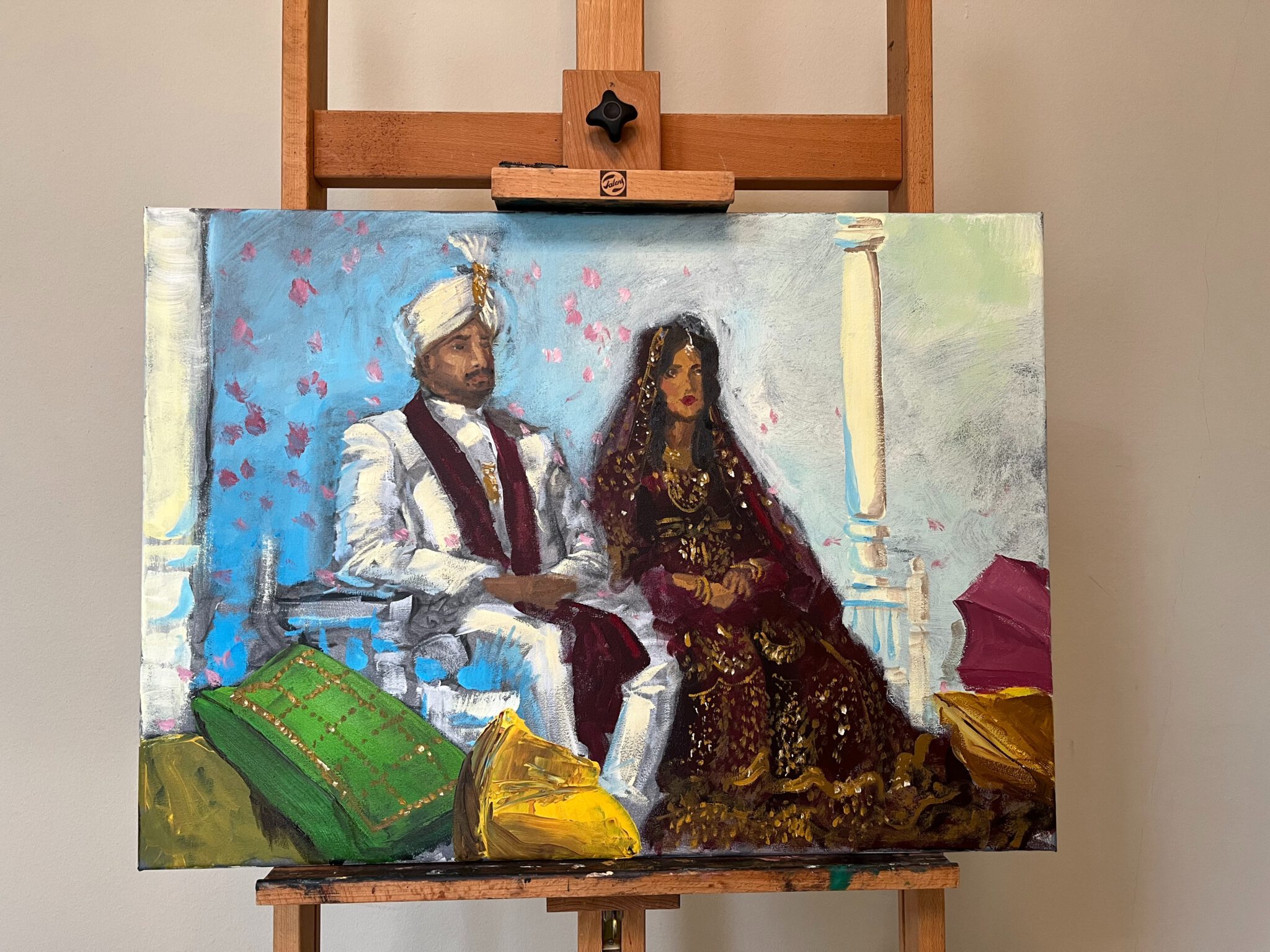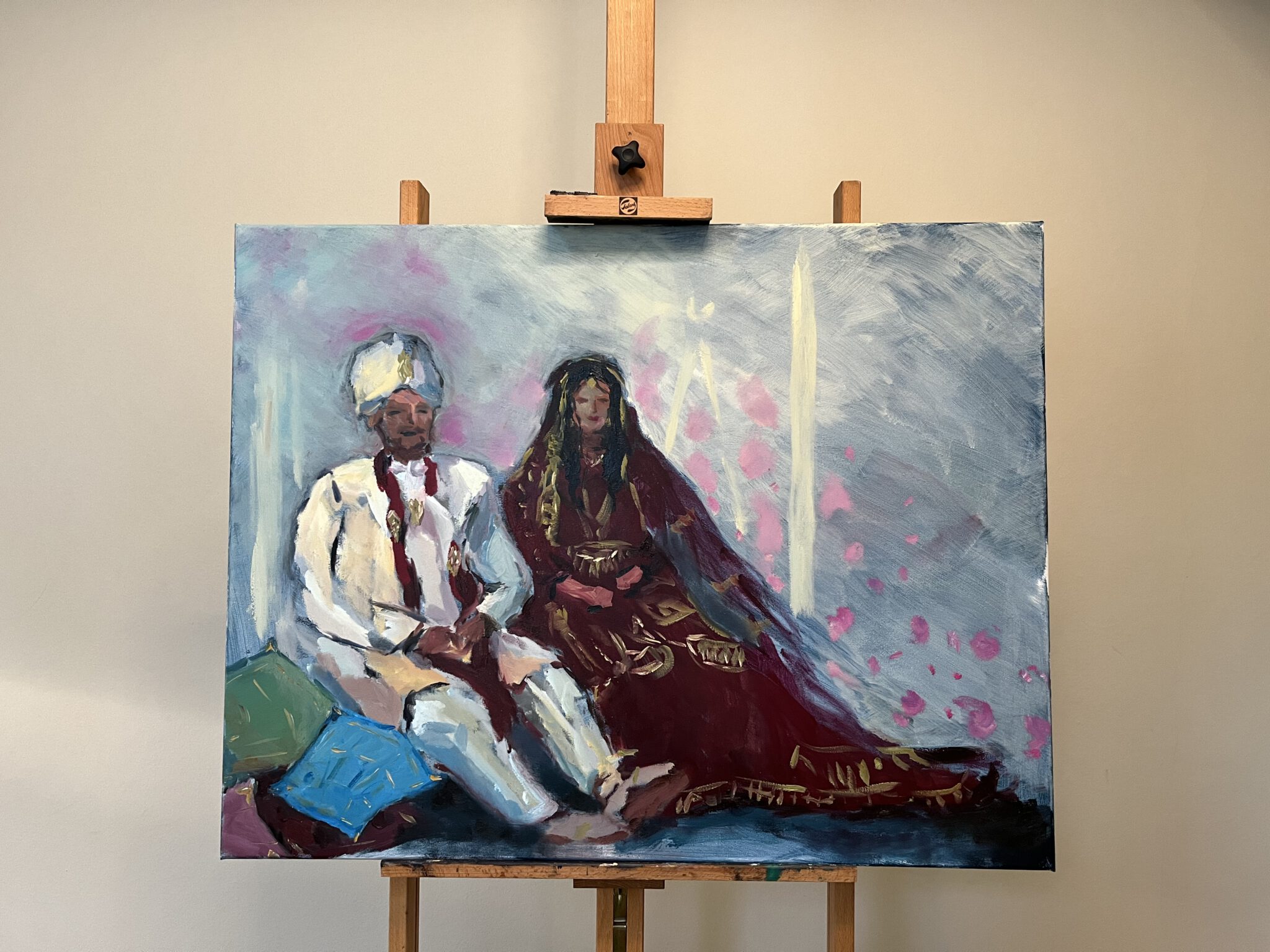 De leerlingen maken voor de vrije opdracht een schilderij van een tafereel van een Hindoestaanse bruiloft. De leerlingen maken hier een vrij doek van waarbij ze goed nadenken over de kleuren die zij inzetten, de sfeer die zij het doek geven met kleur en welk verhaal zij vertellen.